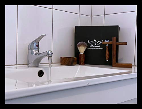 Sharpend Grooming Shaving Set For Men, Double-sided Safety Razor, Pure synthetic Hair Brush wood Handle, Stainless Steel Shaving Bowl And Shaving Stand Kit, Best Gift For Gentleman, Brown