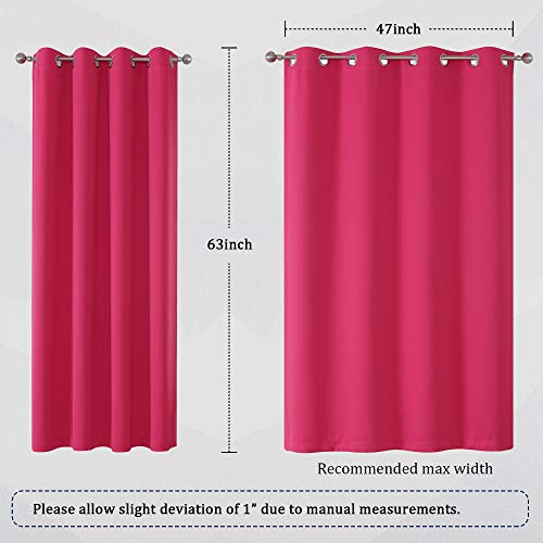 DUALIFE Pink Blackout Curtains 63 Inch Length for Girls Room Thermal Insulated Room Darkening Curtains for Princess Theme Decoration Window Drape with Grommet 52x63 Inches Long Raspberry Sorbet