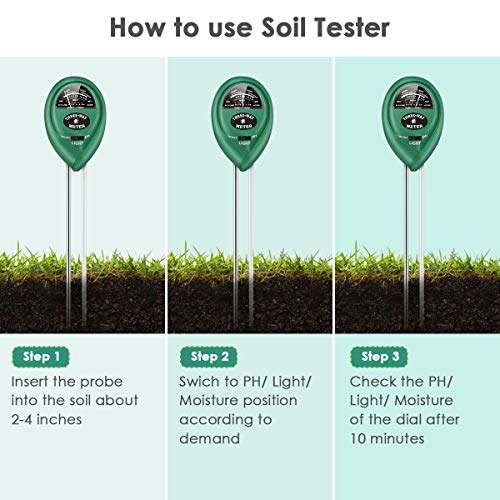 • Soil pH Meter, 3-in-1 Soil Tester Kits with Moisture, Moisture Meter& Water Monitor, Light and PH Test for Garden, Farm, Lawn, Indoor and Outdoor