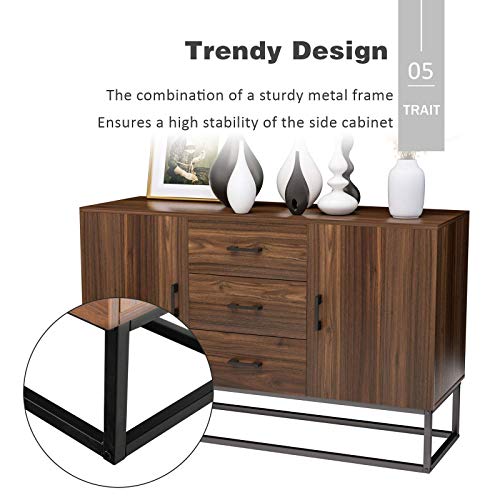 Mecor Sideboard Buffet Storage Cabinet, Industrial Style Sideboard, Top Buffet Storage Cabinet Collective Design 2 Doors and 3 Drawers w/Stable Iron Frame, Walnut Brown