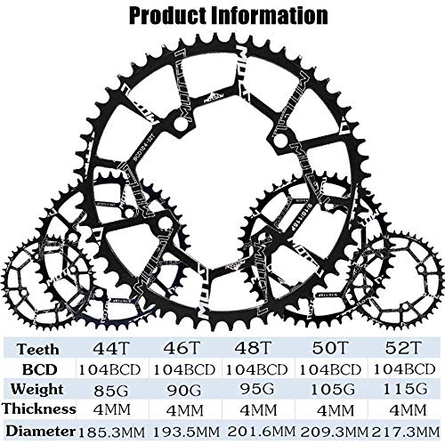 • MOTSUV 104BCD Chainring 40T 42T 44T 46T 48T 50T 52T【Not Fall Off】 Narrow Wide Chain Ring with 5 Pieces Sprocket Bolts for Road Bike,Mountain Bike,BMX Bike,MTB Bike Parts