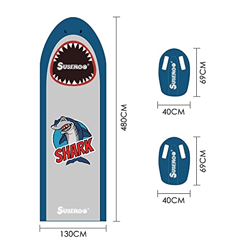 • SuSenGo Slip and Slide for Kids - Lawn Water Slides Inflatable Shark Crash Pad and Around Spray Channel for Races Outdoors(15.7ft)