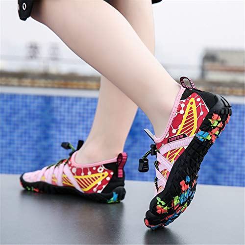 UBFEN Water Shoes for Kids Boys Girls Aqua Socks Barefoot Beach Sports Swim Pool Quick Dry Lightweight Toddler Little Big Kid C Pink Yellow 13 Little Kid