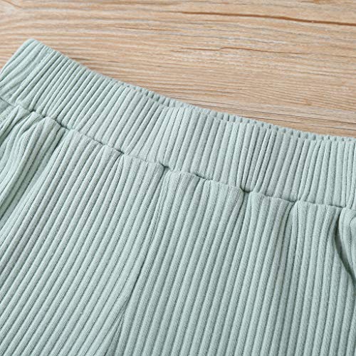 Kuriozud Kids Toddler Little Boy Girl Short Pajamas Set Short Sleeve Top + Shorts Ribbed 2 Piece Summer Sleepwear Loungewear (Kids Shorts Set Light Green, 2-3T)