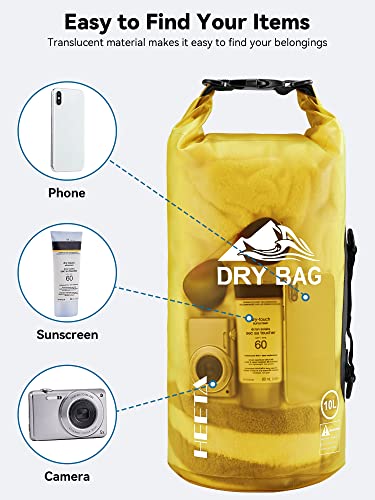 • HEETA Dry Bag Waterproof for Women Men, Roll Top Lightweight Dry Storage Bag Backpack with Phone Case for Travel Swimming Boating Kayaking Paddle Board Camping Beach Accessories (Yellow, 40L)