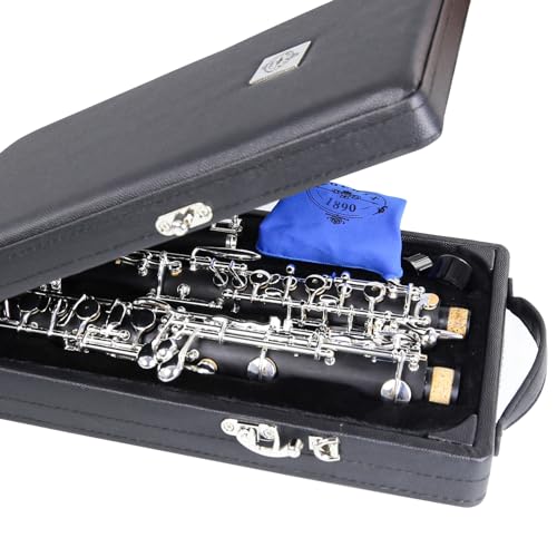 ROCHIX 1890 Rochix Oboe Beginner Student Level SH15 Composite Wood Body Silver Plated Semi Automatic C Tone with 1 Reeds,1 Cleaning Cloth,1 Oboe Swab,1 Thumb Rest,1 Case and More, composite wood silver plated semi-auto