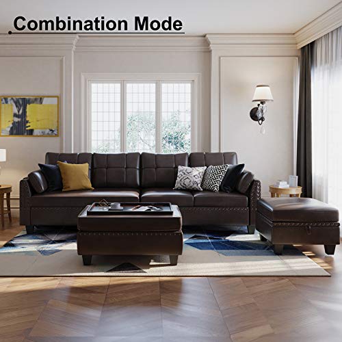 • HONBAY Faux Leather Sectional Sofa Couch Set L Shaped Couch Sofa Set for Living Room Reversible Sofa Sectional with Storage Ottoman for Small Apartment (Sectional+Tray Ottoman)