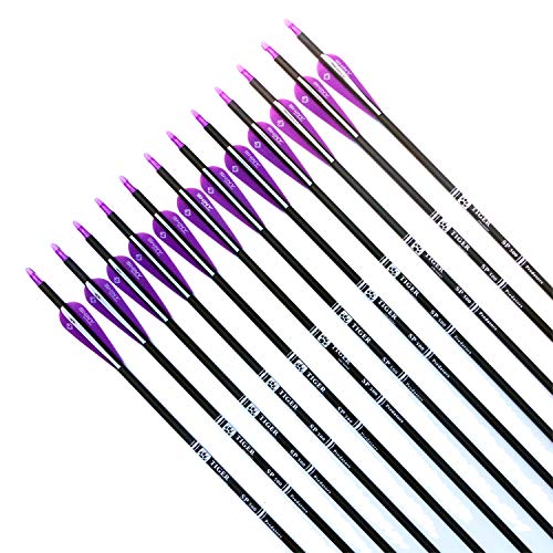 • TIGER ARCHERY 30Inch Carbon Arrow Practice Hunting Arrows with Removable Tips for Compound & Recurve Bow(Pack of 12) (Purple White)
