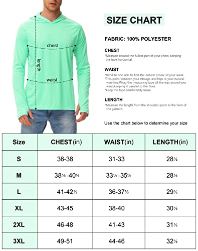 isnowood Sun Shirt UPF 50+ Men's Fishing Long Sleeve UV Protection Hoodie Hiking Rash Guard Swimming Running Green, Large