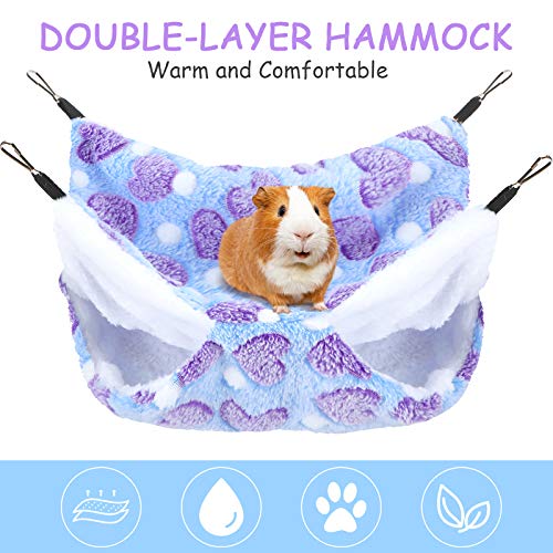 • BOAO 2 Pcs Guinea Pig Rat Hammock Guinea Pig Hamster Ferret Hanging Hammock Accessories for Small Animals Chinchilla Parrot Sugar Glider Ferret Squirrel (Purple, Coffee Color, Heart Pattern)