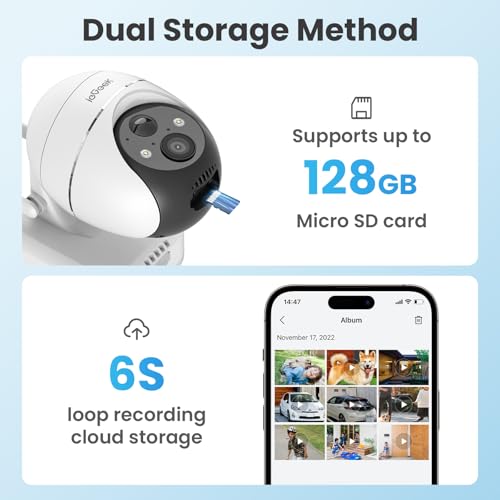 • ieGeek Security Camera Outdoor, 2K Wireless WiFi 360°PTZ Camera, Solar Battery Powered Surveillance Camera with Spotlight/Siren/Motion Detection/3MP Color Night Vision,Compatible with Alexa