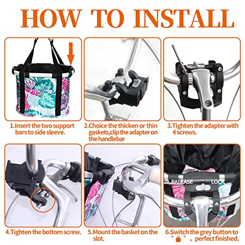 • RAYMACE Bicycle Basket Dog Bike Handlebar Basket Front,Folding Detachable Quick Release Easy Install,Cycling Picnic Bag (Pink Palm Leaf)