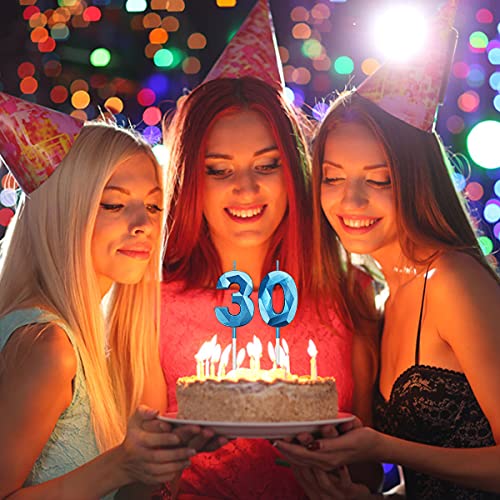• Birthday Candles Numbers 0 1 2 3 4 5 6 7 8 9, 3D Diamond Shape Glitter Number Candles for Cakes Sparkling Numeral Candles Cake Topper Decoration for Kids Adults Birthday Party Favor (Blue, 4)