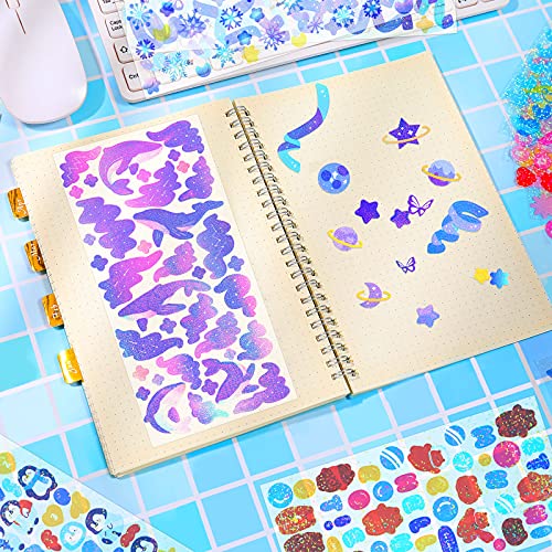 Tenare 8 Sheets Colorful Stickers Self-Adhesive Stickers DIY Scrapbooking Stickers Decorative Craft Stickers for Arts Greeting Cards Scrap Books Home Decoration (Cartoon Style)