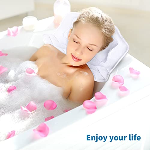 CDJAYHOM Bath Pillow, Bathtub Pillows with Soft 5D Air Mesh & 5 Powerful Suction Cups, Ergonomic Spa Pillow for Head, Shoulder and Back Support, Soft, Non-Slip, Extra Thick, Bath Accessories Item Sku: