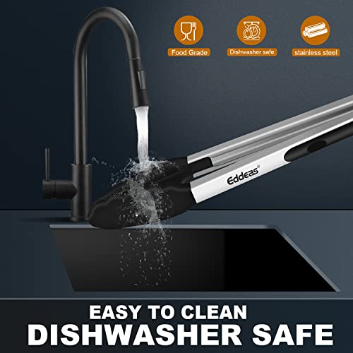 • Eddeas Kitchen Tongs with Silicone Tips, Tongs for Cooking Heat Resistant 600 Degrees Stainless Steel Locking Tong - 7" 9" & 12 inch Silicone Tong Non-Stick, Black Set of 3