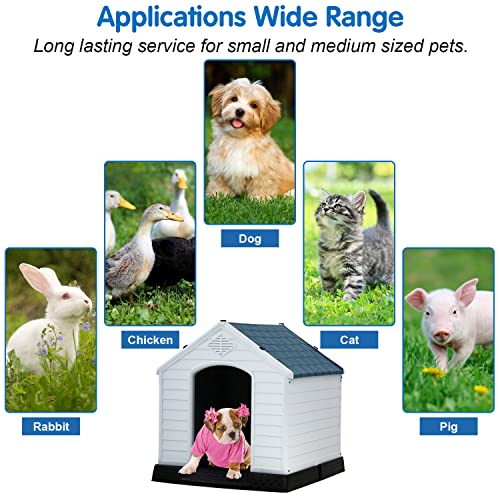 BLKMTY Dog House Outdoor Doghouse for Small Dog House All Weather Plastic Dog House Puppy Shelter with Base Support for Winter Durable Pet House, Blue and white, 28in(L)×26.2in(W)×28 in(H)