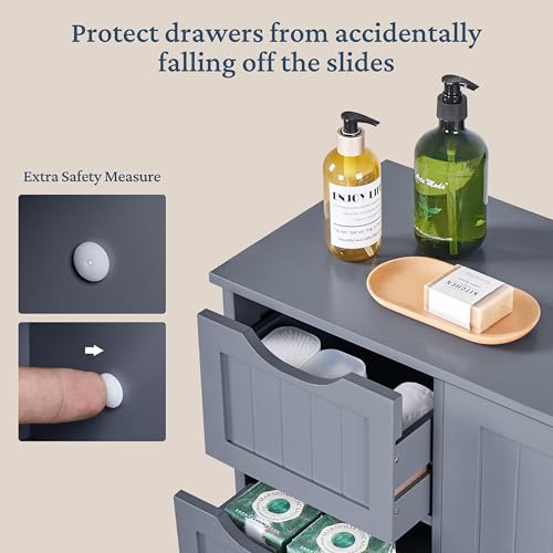 Yaheetech Bathroom Floor Cabinet, Freestanding Storage Organizer Unit Kitchen Cupboard W/ 4 Drawers & Adjustable Shelves, Using for Kitchen/Bathroom, Gray, Grey, 22 x 12 x 32.5 In (LxWxH)