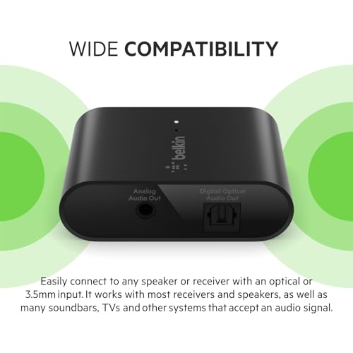 • Belkin SoundForm Connect AirPlay 2 Adapter & Airplay 2 Receiver - Wireless Streaming for Apple Devices to Bluetooth Speakers - Optical & 3.5mm Speaker Inputs for iPhone 15, 14, MacBook Pro, & More