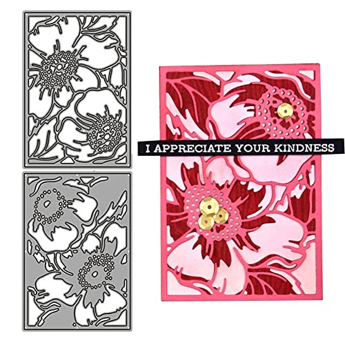 Soumeanz Flower Background Die Cuts Set of 2 Design Frame Cutting Embossing Stencil for Card Making Scrapbooking 4.1x2.9inches (Style A Set), silver, 4.1*2.9 inches