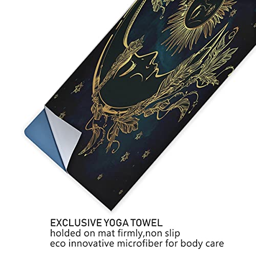 FVFV Black Sun Moon Yoga Towel Mat Non Slip Super Soft Odorless Sweat Absorbent Skidless Grip Mat Towels for Hot Yoga Pilates Workout, Pattern, 73*27"