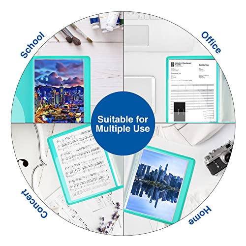 • Sooez 30-Pocket Binder with Plastic Sleeves 8.5x11 (Aqua), Heavy Duty Art Portfolio Folder with Clear Sheet Protectors, Display 60 Pages, Presentation Book for Artwork, Document Organizer Binder