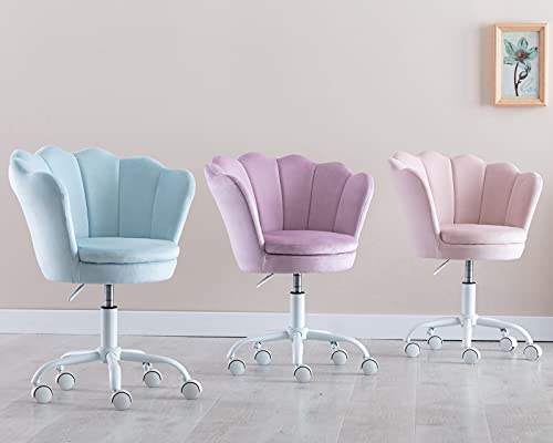 CIMOTA Cute Kids Desk Chair,Velvet Bedroom Chair Adjustable Child Computer Chair Swivel Shell Vanity Chairs for Girls Bedroom/Study Room, Light Pink, 22D x 21.7W x 27.6H in
