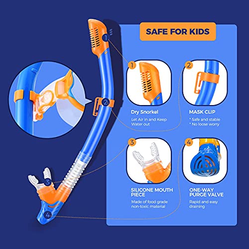 • Kids Snorkel Set, Dry Top Snorkel Mask Seaview with Anti- Fog Tempered Glass for Children, Boys, Girls, Youth, Child Scuba Diving Mask Snorkel Kit Swimming for Snorkeling
