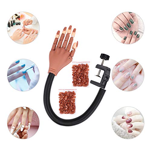 • Practice Hand For Acrylic Nails, RUEOO Nail Practice Hand With 200 PCS Nails - Flexible Movable False Fake Hands for Nail Manicure - Sturdy Will Not Fall off, Best Manicure Practice Tool