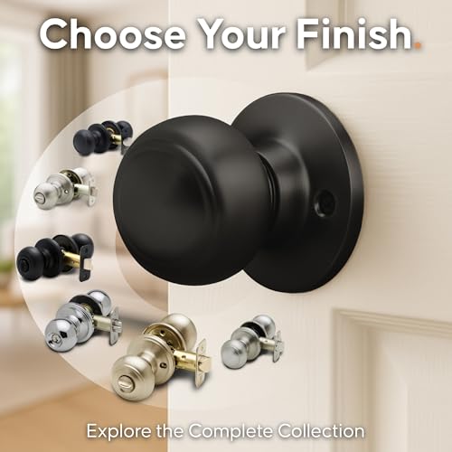 • Copper Creek Colonial Passage Interior Door Knob – ANSI Grade-3 Certified, Modern Heavy Duty Handle, Easy Install and Reversible for Bedroom, Bathroom and Closets – Matte Black (2 Pack)