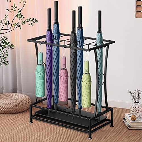 • YOCOMEY Metal Umbrella Holder Stand with Removable Drip Tray, Industrial Free Standing Umbrella Rack Organizer for Entryway Home Office Patio Decor(10 Slots 8 Hooks, Black)