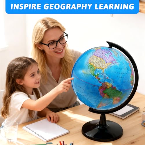 • GOCHANGE Classroom Globes Elementary, 13in Large Globe More Detailed with Countries & Capitals & State Capitals, Political Teaching Tool for Adults & Children - No Assembly Required