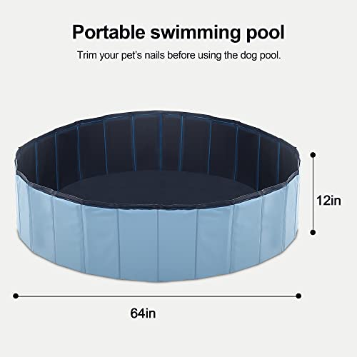 BestPet Foldable Dog Pet Bath Pool Large Dog Collapsible PVC Plastic Swimming Pool Indoor Outdoor Bathing Tub Kiddie Pool for Dogs Cats and Kids, Blue, 64 in Light Blue