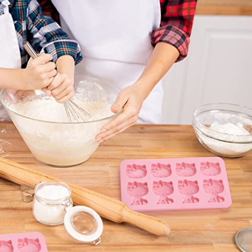 DC QZHMKJ PET Hello Kitty Silicone molds,Small ice mold,Chocolate tray for Sugarcraft, Birthday Cake Decoration, Gum paste Icing, Candy Chocolate Cupcake Topper Decorating and DIY Baking Tools 8 Cups 2 pack, Pink