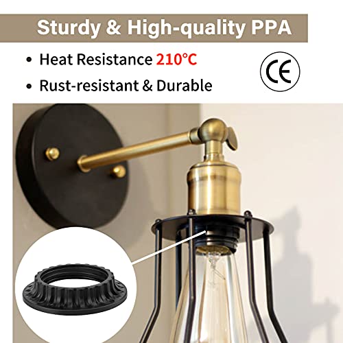 • DiCUNO Lamp Shade Rings, E26 Light Socket Collar Ring, Black Threaded Reducer 1-3/8 Inches (34mm) and 1-1/2 Inch (39mm), Hanging Lamp Holder Parts, (34mm * 2pcs; 39mm * 2pcs)