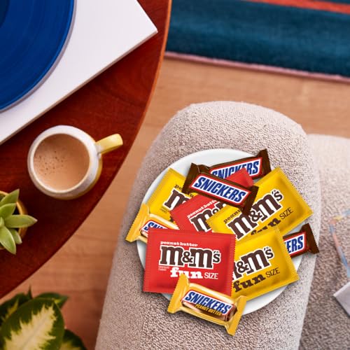 • M&M'S Chocolate Candy and SNICKERS Fun Size Peanut and Peanut Butter Choclate Variety Assortment Candy Packs , 22.66 Oz Bulk Bag