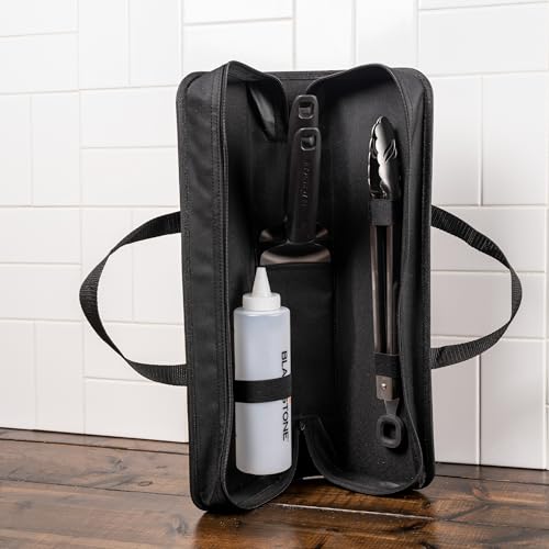 • Blackstone 5481 Tabletop 5 Piece Griddle Tool Kit- Outdoor Indoor Grill BBQ Utensils, 2 Stainless Steel Spatulas, 1 Classic Tong, 16Oz Squeeze Bottle, 1 Portable Carry Bag, Black, Silver, White