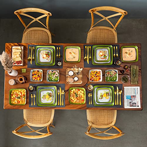 • vancasso, Stern Green-Blue Dinner Set- Square Reactive Glaze Tableware- 32 Pieces Kitchen Dinnerware Stoneware Crockery Set with Dinner Plate, Dessert Plate, Bowl and Soup Plate Service for 8