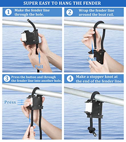 • Huntury Boat Fender Hanger, Boat Rail and Cleat Fender Clips, Quick Connect and Release Fender Lines, Boat Bumper Adjuster, Pack of 2