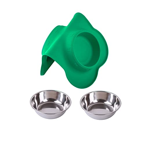 • Hubulk Pet Dog Bowls 2 Stainless Steel Dog Bowl with No Spill Non-Skid Silicone Mat + Pet Food Scoop Water and Food Feeder Bowls for Feeding Small Medium Large Dogs Cats Puppies (X- L, Huntergreen)
