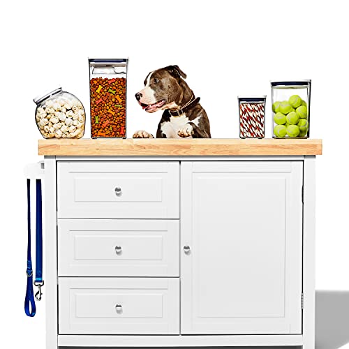 Who deserves the very best? Every single pet. And so we made this OXO 4.4 Qt Pet POP Container to hold their kibble and keep it fresh. It can store up to 4 pounds of dog food or 3.5 pounds of cat food. It has the classic POP Container lid, which creates an airtight seal (to keep pests and moisture out) and can easily be taken apart for cleaning. This Container also comes with a detachable ½ cup scoop, for easy serving. And like all our square POP Containers, it can be neatly lined up or stacked to streamline the look of a shelf, counter or pantry. For best results, always use the button to open and close. Do not carry POP Containers by the lid. Dishwasher safe.