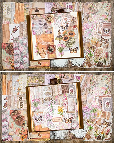 • Knaid 200 Piece Vintage Ephemera Bundle - Paper & Sticker Kit for Junk Journaling, Scrapbooking, Planners, Bullet Journals, Collage, Decoupage - Cottagecore Themed - Pastel/Earthy Tones