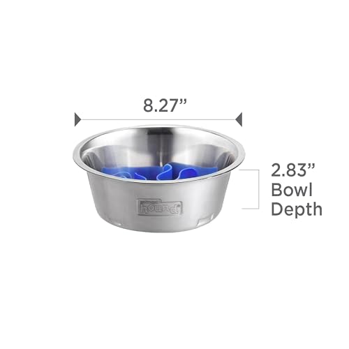 • Outward Hound Fun Feeder Stainless Steel Slo Bowl Slow Feeder Dog Bowl with Removable Maze Insert, Medium, 2 Cups, Metal, Silver Gray