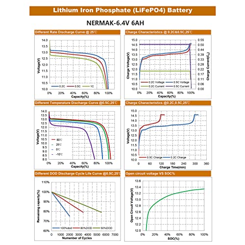 • Nermak 6V 6Ah Lithium LiFePO4 Battery 2 Pack, 2000+ Cycles Rechargeable Lithium Iron Phosphate Battery for Emergency Light, Game Feeder, Kids Ride On Car and More with BMS (F1 Terminals)
