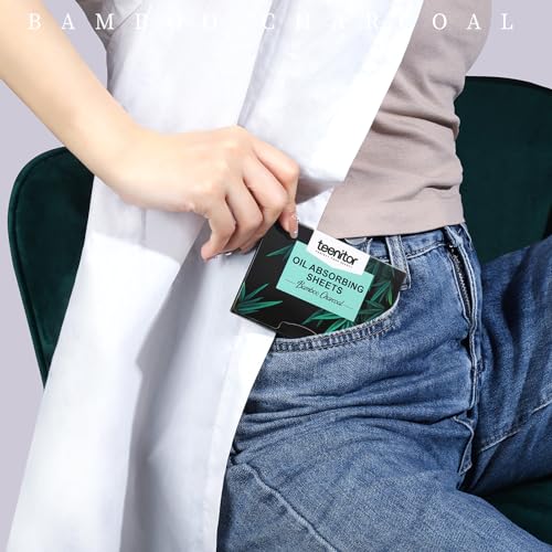 • Teenitor 800 Counts Oil Blotting Papers for Face, Bamboo Charcoal Oil Absorbing Sheets for Oily Skin, Oil Blotting Sheets for Face, Oil Absorbent Pads Blotter Paper, Oil Face Wipes Large 10cmx7cm