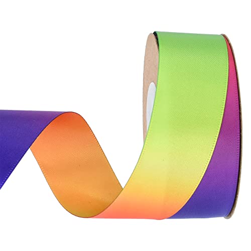 • LaRibbons 3 Rolls Dark Gradient Rainbow Color Double Face Stain Ribbon, Total 30 Yards (0.39 Inch x 10-Yard, 0.59 Inch x 10-Yard, 0.98 Inch x 10-Yard), Use for Birthday, Gift Wrapping, DIY Handmade