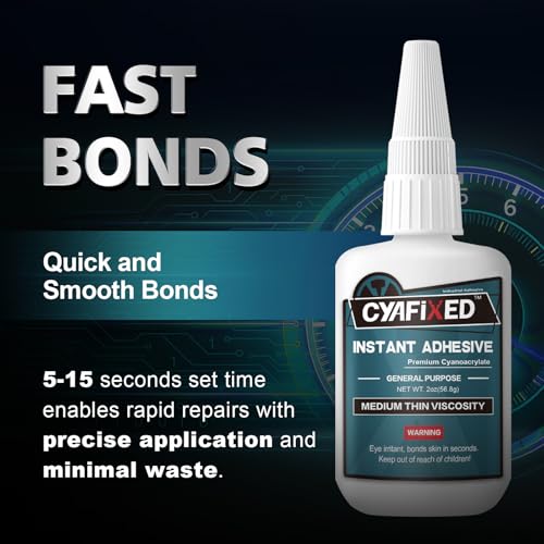 CYAFIXED Super Glue Liquid, Instant Clear Cyanoacrylate Medium Thin Viscosity Adhesive, Food Safe CA Glue for Shoe Repair Leather Ceramic Plastic Glass Metal Wood Aquarium Porcelain Rubber Pottery Model Craft, 2 oz