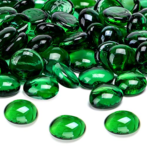 • FUTUREPLUSX 1LB Green Flat Glass Marbles, Premium Colored Gems Fish Bowl Marbles Decorative Mosaic Glass Pebbles Floral Smooth Stones for Vases Aquarium Home Decor