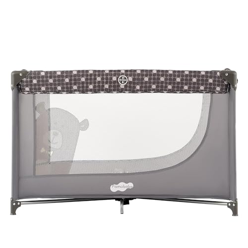 Pamo Babe Compact Pack and Play - Portable Crib for Baby, Lightweight Foldable Travel Playard with Mattress Pad & Carry Bag, Safe Breathable Travel Bed for Home, Trips & Family Visits, Cute Pattern, Grey