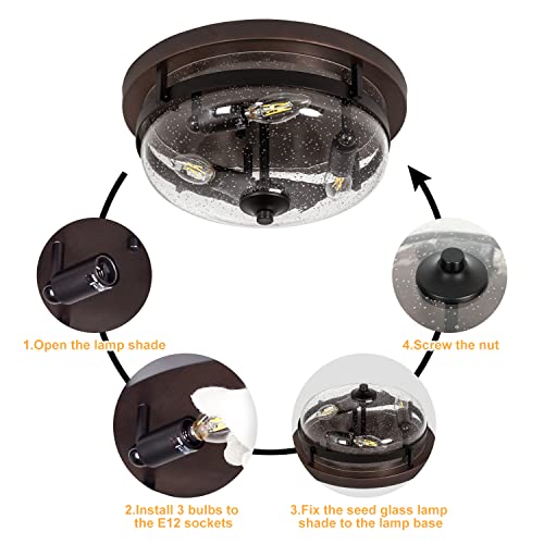 DINGLILIGHTING DLLT 3-Light Flush Mount Ceiling Light, 15 Inch Industrial Close to Ceiling Light Fixture, Farmhouse Ceiling Lighting with Seeded Glass Shade for Hallway Kitchen Porch Dining Room, Bronze Finish, E12, 3 Light-Seed Glass